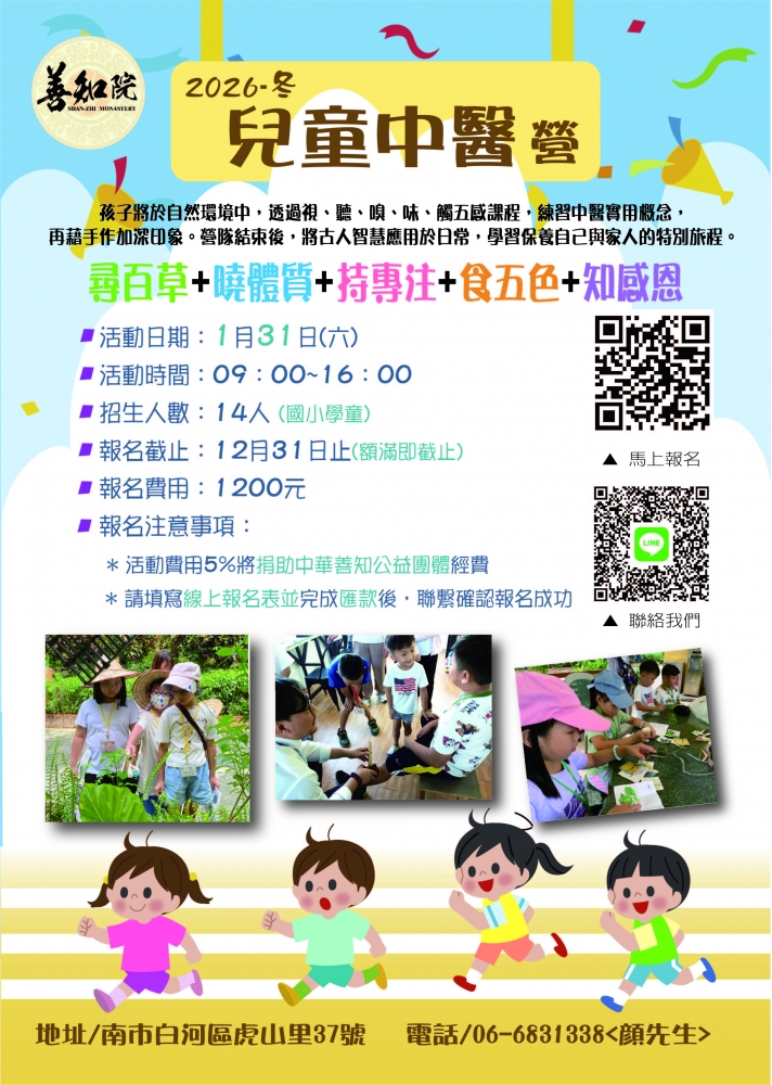 孩子於充滿自然的環境中,透過視、聽、嗅、味、觸五感課程,帶領孩子認識中醫實用概念,再藉由陪伴手作練習加深印象。
